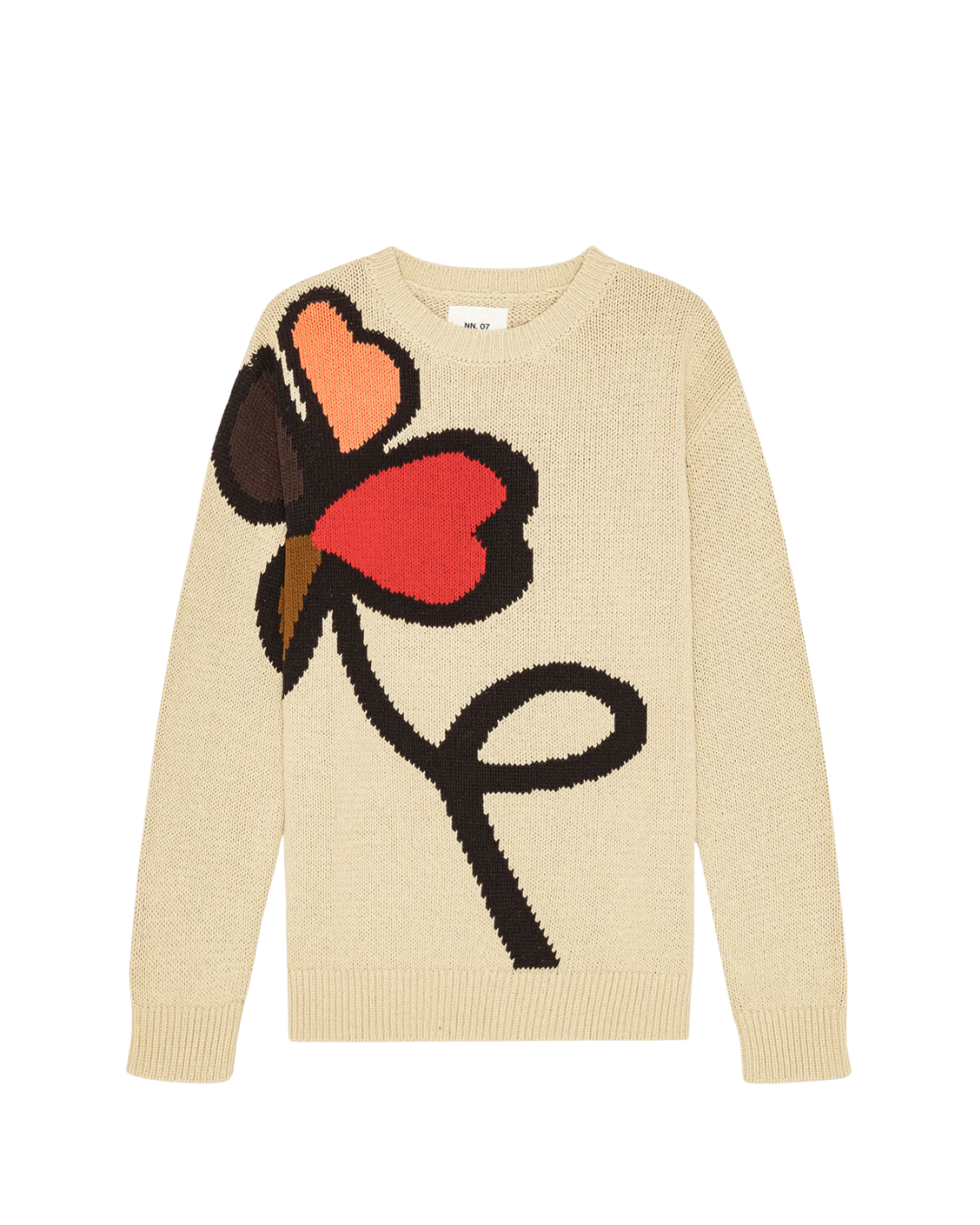 Grof gebreide katoenen trui met een relaxte pasvorm, voorzien van een intarsia-breisel met een speels grafisch patroon. Ontworpen met een opvallende boothals en een droge, zachte stof voor optimaal comfort en stijl.