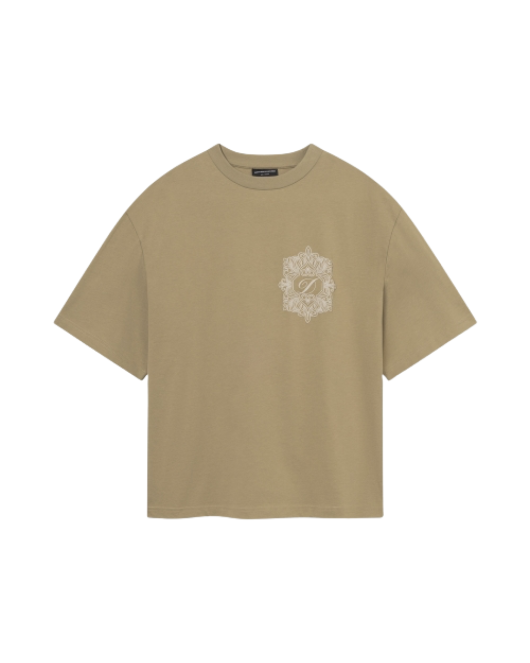 Dit beige T-shirt combineert een minimalistische look met een verfijnd detail op de borst. De subtiele crest-print geeft het shirt een luxe en rustige uitstraling, perfect voor een clean streetwear fit.